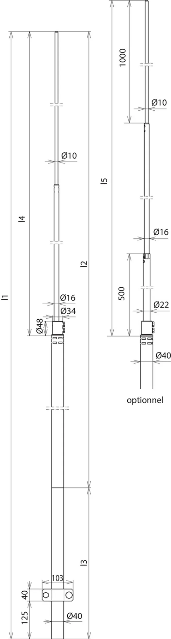 | Longueur utile max. avec pointe de capture (l2) | 4000 mm |