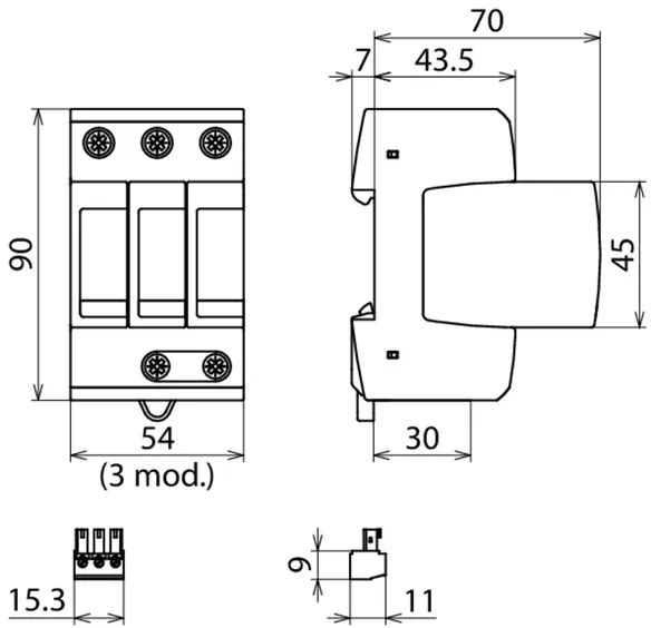 | Niveau de protection [L-PE]/[N-PE] (UP ) | ≤ 1,5 / ≤ 1,5 kV |