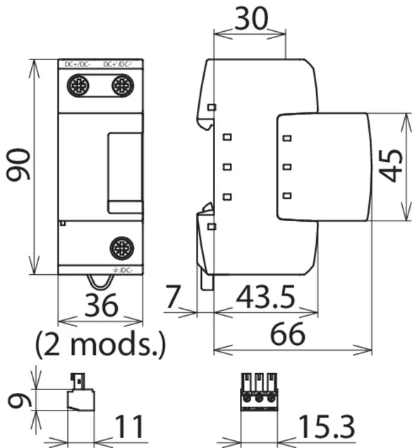 | Niveau de protection (DC+/DC- -> DC-/DC+) / (DC-/DC+ ->9) (UP ) | ≤ 1,5 kV/≤ 1,5 kV |