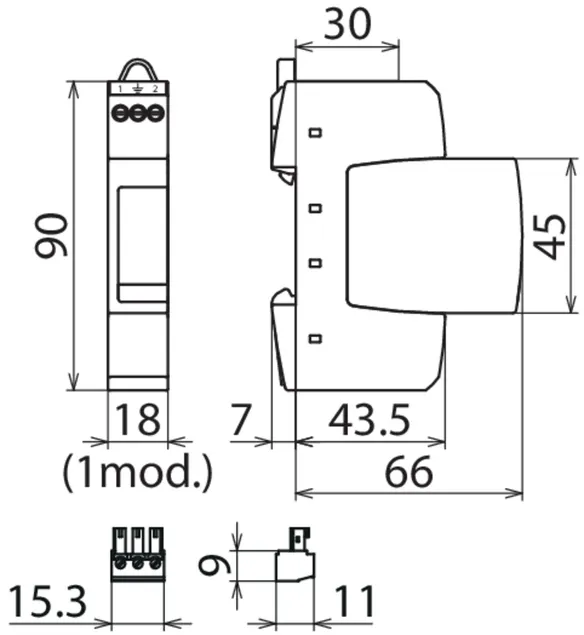 - Parafoudre type 3 bipolaire comprenant une embase et un module de protection débrochable