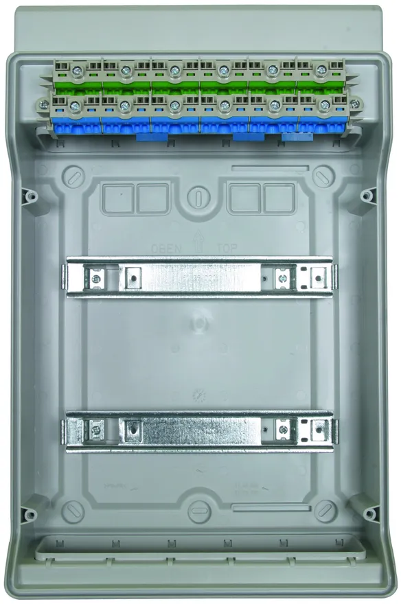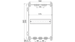 | Nombre d'entrées pour câbles | 8x pour câble Ø7-12 mm ; 8x pour câble Ø7-14 mm ; 4x pour câble Ø12-20 mm ; 1x pour câble Ø16,5 - 29 mm (en haut et en bas) |