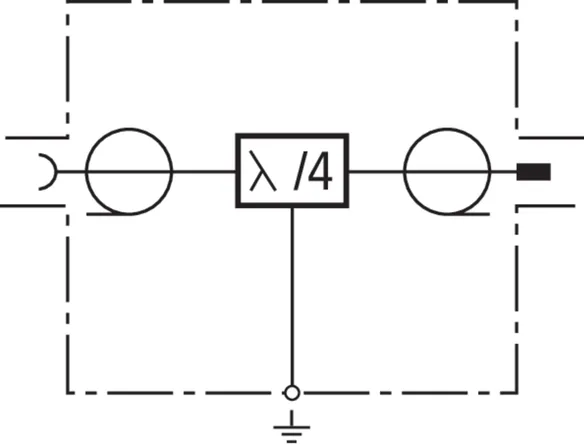 Parafoudre combiné à technologie Lambda/4 (quart d'onde), ne nécessitant pas de maintenance pour applications multi-fréquences. Le parafoudre peut également écouler des courants de foudre partiels élevés. La téléalimentation n'est pas possible car le parafoudre représente un court-circuit galvanique pour des signaux en basse fréquence.