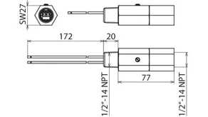 | Montage côté terrain/côté appareil | Filetage extérieur 1/2-14 NPT |