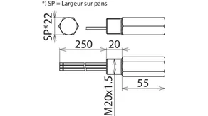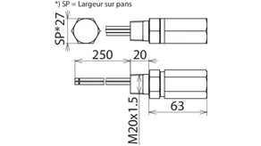 | Montage côté terrain/côté appareil | Filetage extérieur M20 x 1,5 |