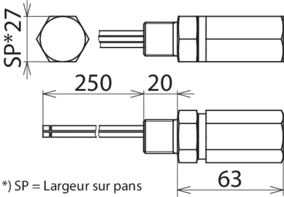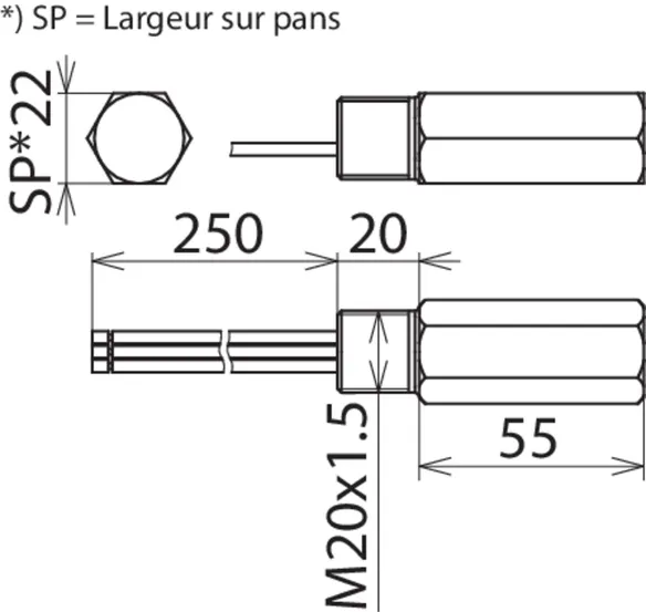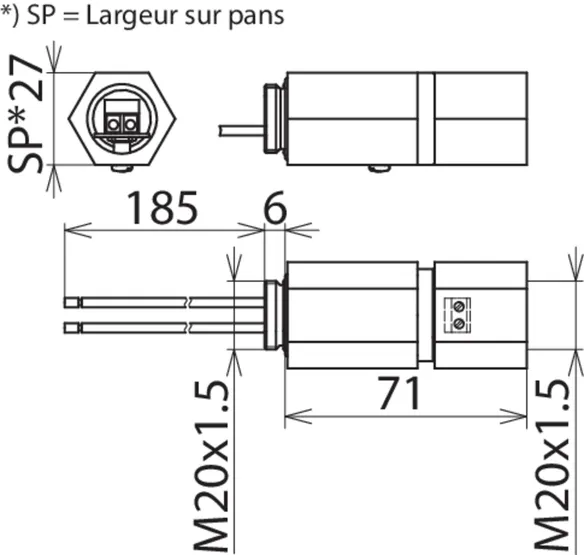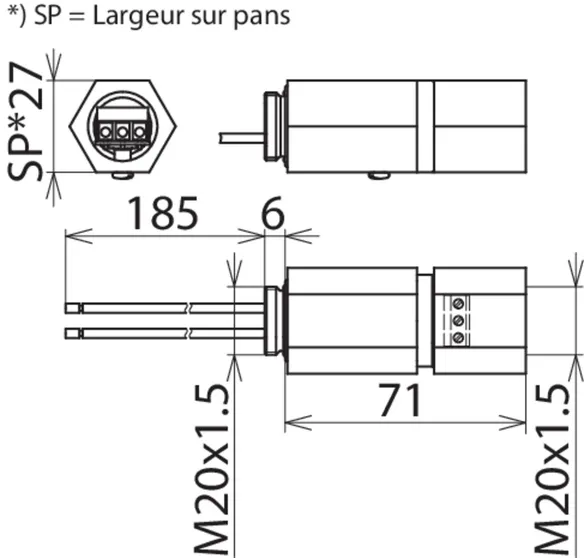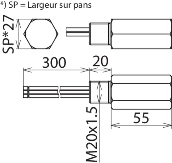 | Montage côté terrain/côté appareil | Filetage intérieur M20 x 1,5 / Filetage extérieur M20 x 1,5 |