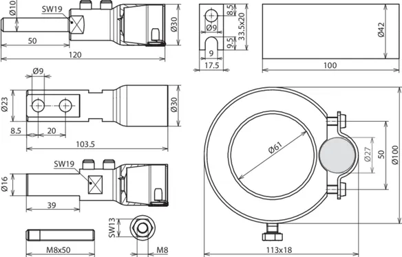 | Raccordement | boulon Ø10 mm, L 50 mm |