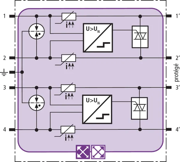 - Tenue au courant de foudre jusqu'à 10 kA (10/350 μs)