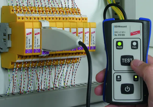 Appareil portable avec capteur RFIDLifeCheck pour une mise en œuvre flexible. Pour tester rapidement et facilement les parafoudres avec RFIDLifeCheck. Équipé d’un affichage visuel et sonore. De plus, doté d’un raccord USB et d’un logiciel de base de données sur PC, pour la gestion via un ordinateur des échantillons et la documentation des résultats de mesure. Le DRC LC M3+ est équipé d’un capteur RFIDLifeCheck avec fonction d’encliquetage. L’appareil manuel soutient le paramétrage du parafoudre pour la surveillance d’état.