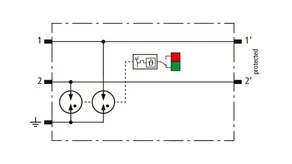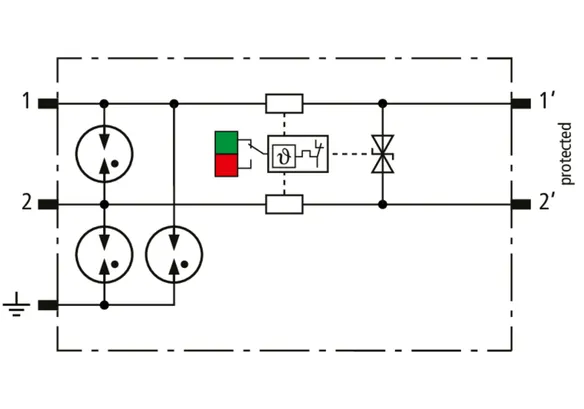 Parafoudre débrochable peu encombrant d'une largeur de 6 mm et technologie de connexion push-in avec indication d'état en façade. Protection de deux conducteurs partageant un potentiel de référence commun ou une interfaces asymétriques.