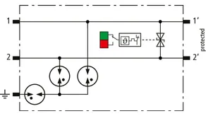 Protection deux conducteurs simples, ou pour la mise à la terre indirecte des câbles blindés. Avec déconnexion du signal à des fins de maintenance.