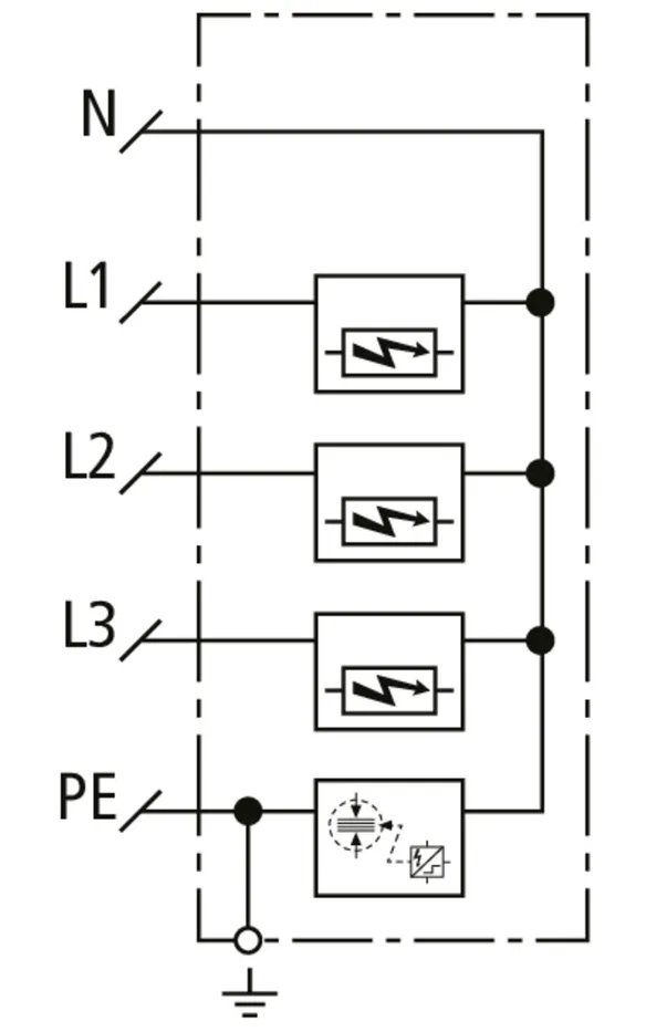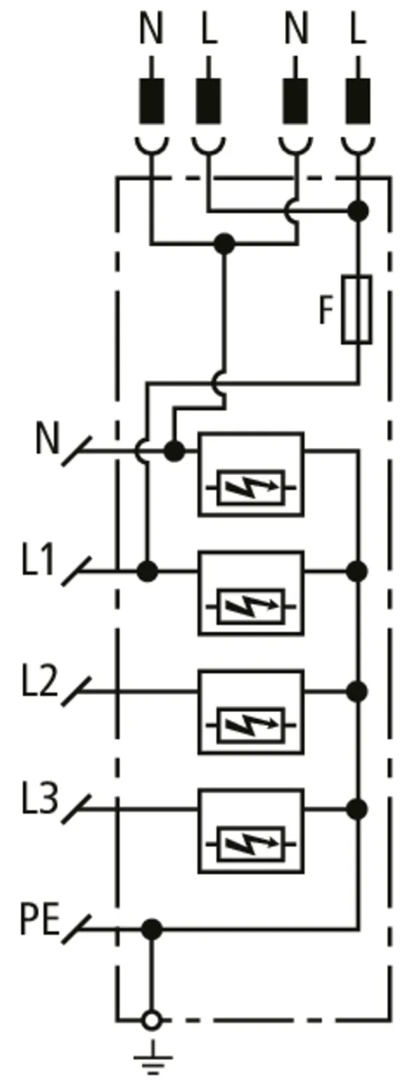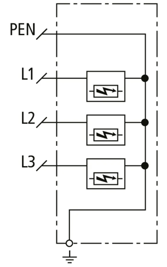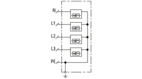 | Courant de choc de décharge (10/350 µs) [L1+L2+L3-PEN] (Itotal ) | 22,5 kA |