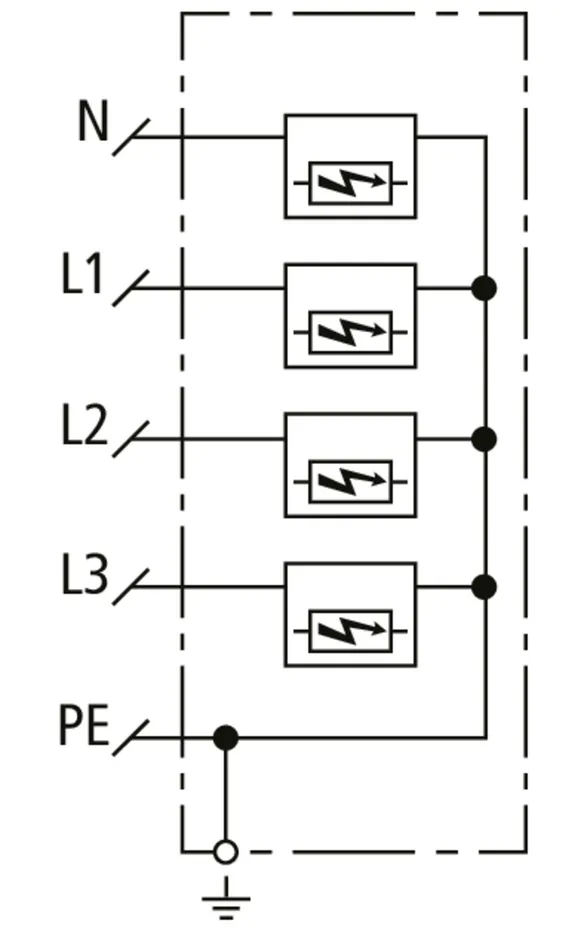 | Courant de choc de décharge (10/350 µs) [L1+L2+L3+N-PE] (Itotal ) | 50 kA |