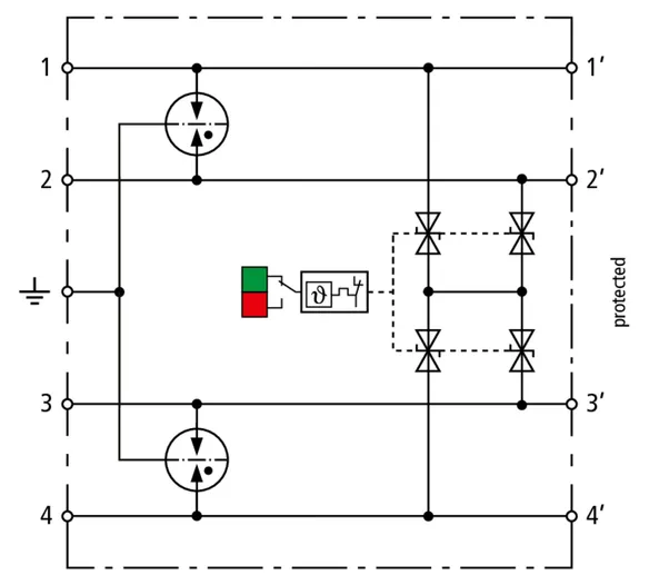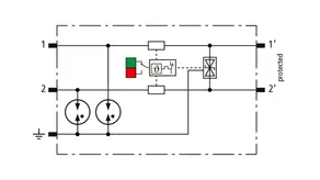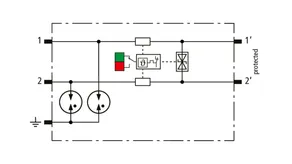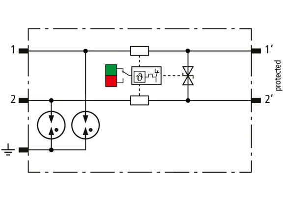 Parafoudre compact d'une largeur de 6 mm et technologie de connexion push-in avec indication d'état. Pour la protection d'une paire de circuits de mesure et de systèmes de bus à sécurité intrinsèque, conforme aux exigences FISCO. Résistance d'isolement >500 V mise à la terre.