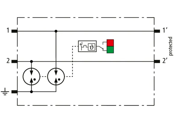 - Capacité d'écoulement de 3 kA (10/350 µs), 10 kA (8/20 µs)
