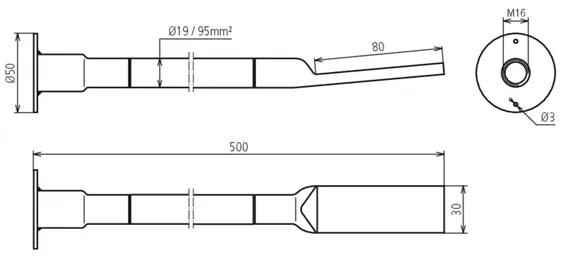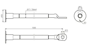Les ponts de mise à la terre sont conçus pour assurer la mise à la terre, le circuit de retour ainsi que la liaison équipotentielle dans la zone d’utilisation des voies ferrées. Cette variante destinée à la mise à la terre des tubes de grand diamètre est utilisée pour les fondations sur pieux et les tubes de grand diamètre. Le produit est composé d’un câble en cuivre avec une douille pressée et une plaque de raccordement en INOX avec perçage intégré pour la fixation du coffrage à une extrémité, ainsi que d’une cosse de câble à l’autre extrémité. La cosse de câble permet de créer un raccordement qui résiste aux courants de court-circuit pour les fondations sur pieux et sur les tubes de grand diamètre. La flexibilité du câble facilite le montage dans l’armature pour l’utilisateur. De plus, ce pont de mise à la terre possède une homologation technique de DB Netz AG, ce qui garantit une sécurité de planification élevée.