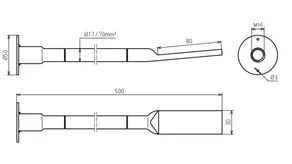 Les longueurs spéciales sont disponibles sur demande : jusqu’à 500 mm de longueur totale par incréments de 50 mm, à partir de 500 mm de longueur totale par incréments de 100 mm.