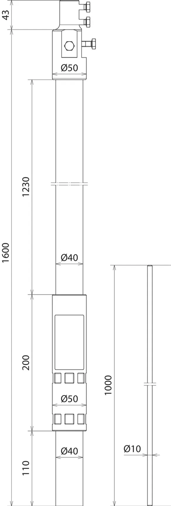 Tube support avec terminaison interne / élément ressort PA avec sortie latérale | pointe de capture INOX Ø10 mm, longueur 500 / 1000 mm.
