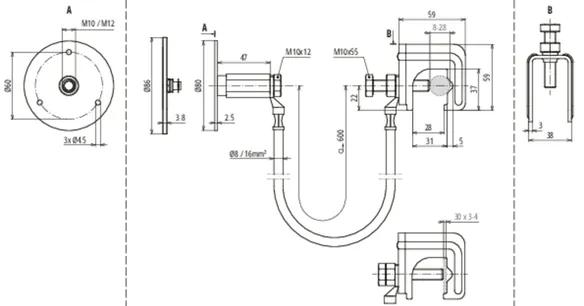 | Filetage de raccordement, point de prise de terre | M10 / M12 |