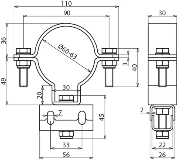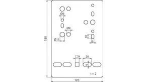 | Fori di fissaggio per percorsi di cavi | [4x] 9 x 20 / [1x] 9 x 9 mm |