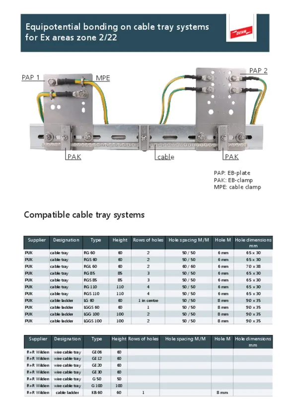 | Connessione a | PAP 1 EX KB ER e PAP 2 EX KB ER o corsia per cavi ossia per tensione ampia dei cavi |