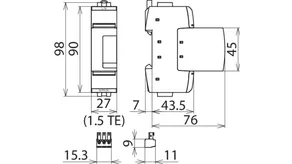 Modulo di protezione da sovratensioni unipolare, componibile, con tensione di riferimento varistore Umov = 750 V AC, costituito da base e modulo di protezione innestato; con fusibile integrato e contatto di telesegnalamento per dispositivi di controllo (contatto di scambio pulito).