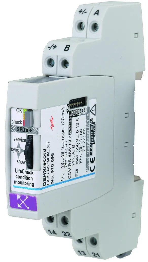 - Monitoraggio fino a un massimo di 4 scaricatori di sovratensione con contatto di telesegnalamento (FM) e un massimo di 150 scaricatori BLITZDUCTOR XT (RS485)