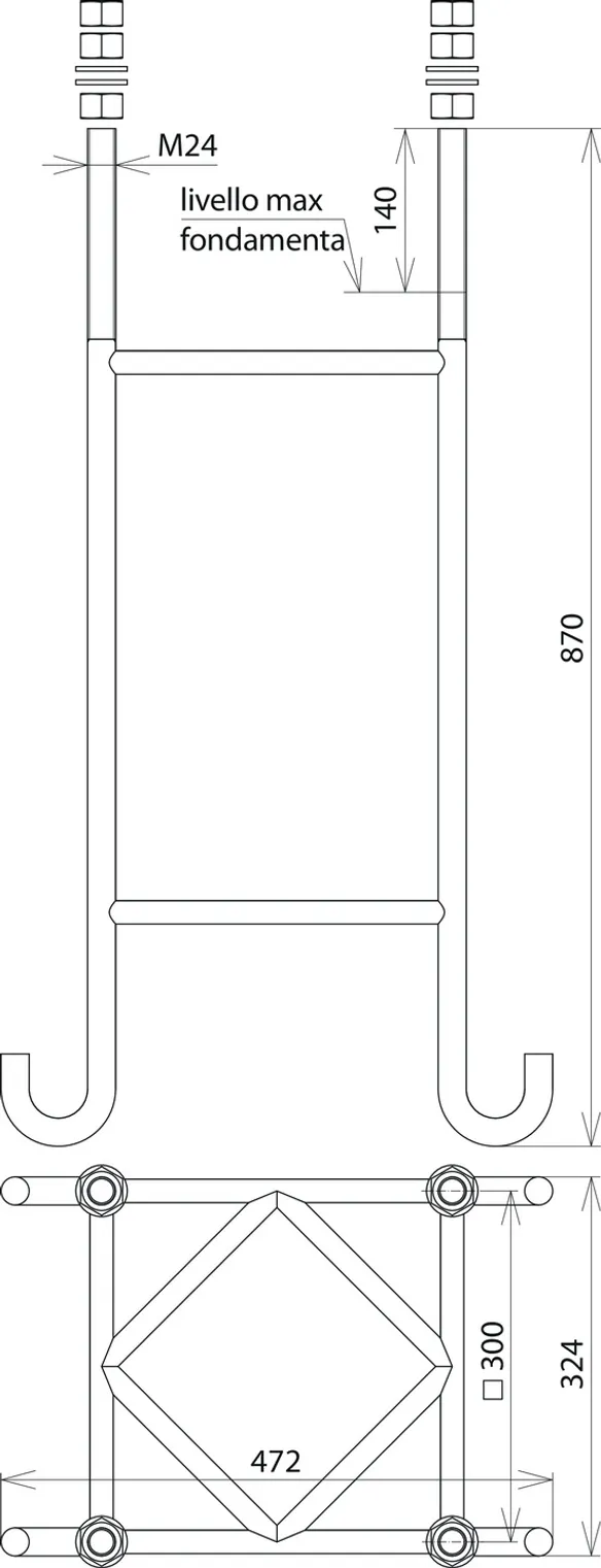| Esecuzione bullone filettato | 4x M24 (300 x 300 mm) |