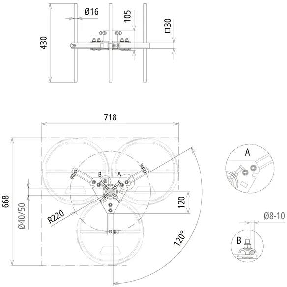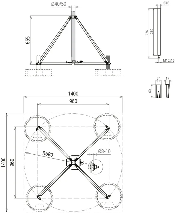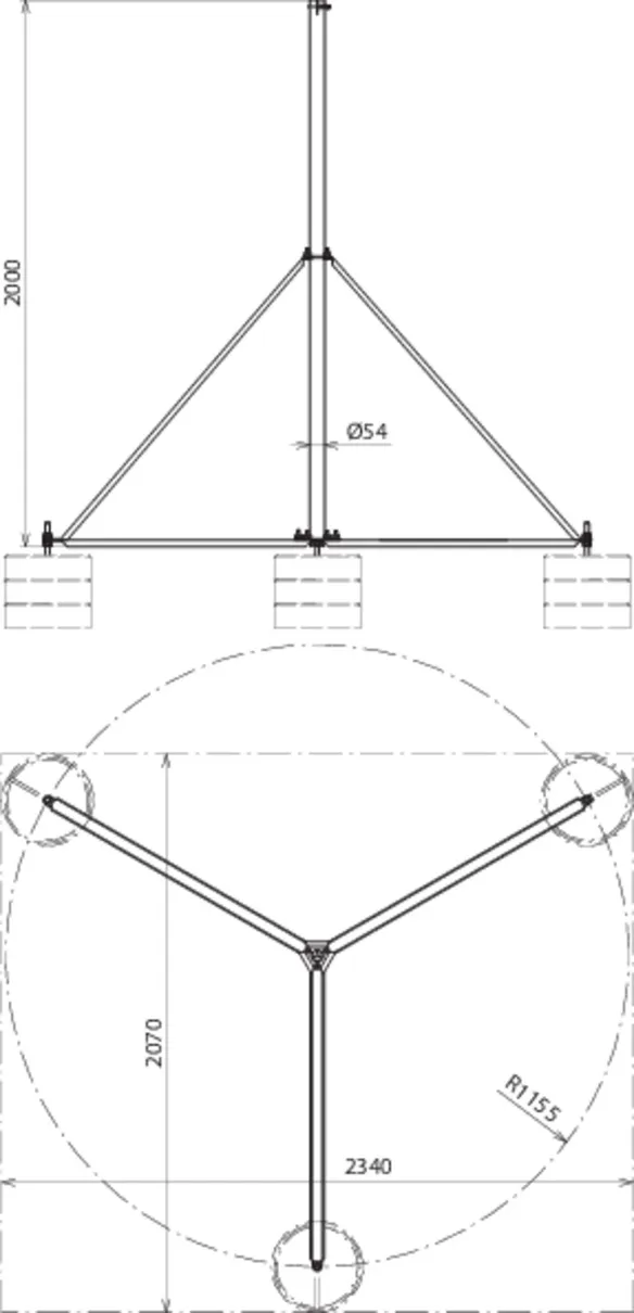 Per aste di captazione Ø 40 mm o tubi portanti Ø 50 mm con lunghezza 3200 mm (ad es. art. n. 105 440 o 105 300), senza ulteriore fissaggio ad elementi strutturali.