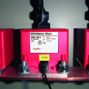 - Scaricatore per corrente di fulmine su base spinterometrica con fusibile di protezione integrato con portata di corrente di fulmine, con forma costruttiva compatta dell'involucro