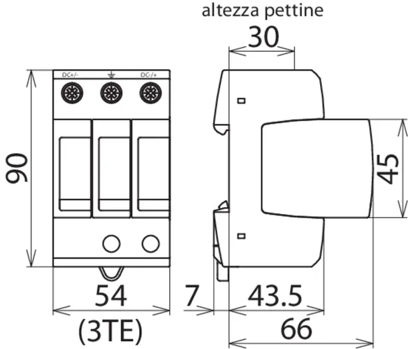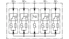| Corrente impulsiva nominale di scarica (8/20 µs) [(DC+/DC-) --> PE] (In ) | 10 kA |