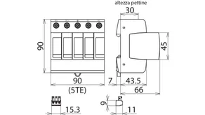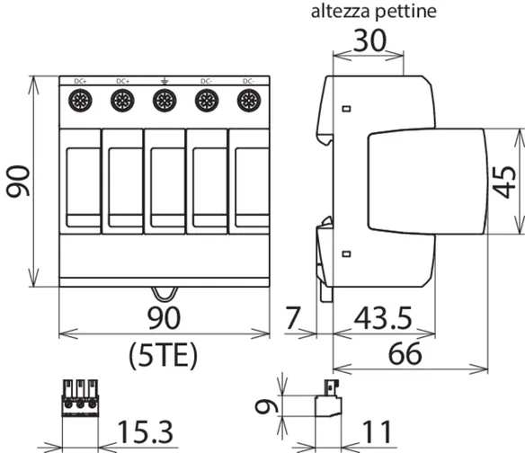 - Unità modulare completa pronta per il cablaggio per impianti fotovoltaici costituita da basetta e moduli di protezione innestati