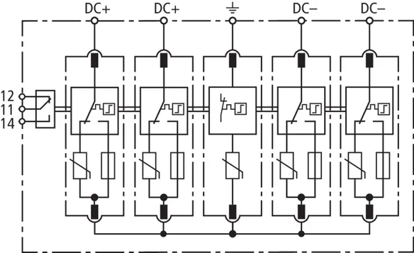 | Corrente impulsiva nominale di scarica (8/20 µs) [(DC+/DC-) --> PE] (In ) | 12,5 kA |