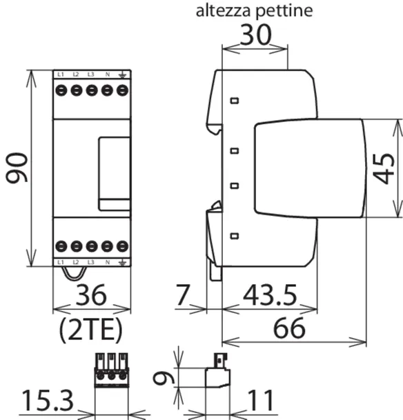 | Corrente max complessiva di scarica (8/20 µs) [L1+L2+L3+N-PE] (Itotal ) | 8 kA |