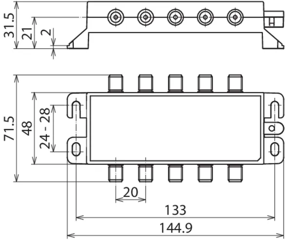 Limitatore di sovratensione a 5 moduli per sistemi d’antenna 75 Ohm. Forma costruttiva speciale per distributori d’antenna satellitari e commutatori multipli. Il limitatore corrisponde ai requisiti di schermatura della classe A secondo EN 50083-2.