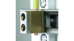 Morsetto per il collegamento di schermi, per la messa a terra dello schermo su guida profilata di ancoraggio. Adatto per l'equipotenzialità antifulmine. È possibile l'applicazione successiva senza interruzione dello schermo – montaggio senza l'ausilio di attrezzi.
