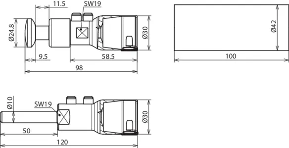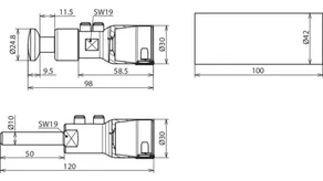 | Connessione | Perno Ø 10 mm, L 50 mm con filettatura M12 con grova |