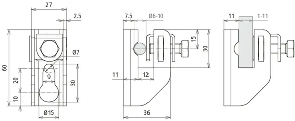 | Fissaggio | Ø15 / 9 x 20 mm |