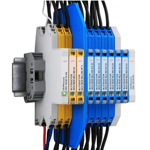 Limitatore di sovratensione modulare a risparmio di spazio, con larghezza di installazione 6 mm e tecnologia di connessione Push-in, con indicazione di stato per la protezione di 2 conduttori di interfacce di segnale multifilari con separazione galvanica. Con tensione nominale di 230 V e sezionamento del segnale per motivi di manutenzione.