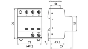 | Corrente impulsiva di fulmine (10/350 µs) [L-N]/[N-PE] (Iimp ) | 7,5 / 15 kA |