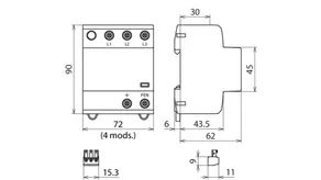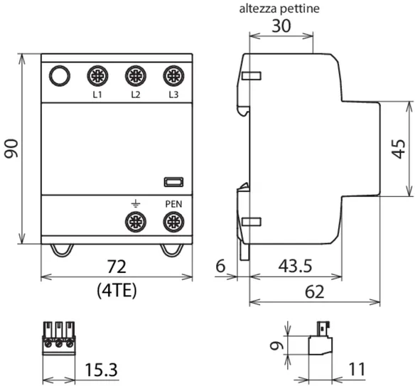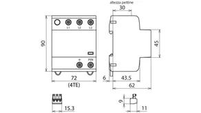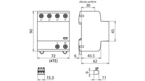 | Corrente impulsiva di fulmine (10/350 µs) [L-N]/[N-PE] (Iimp ) | 7,5 / 15 kA |