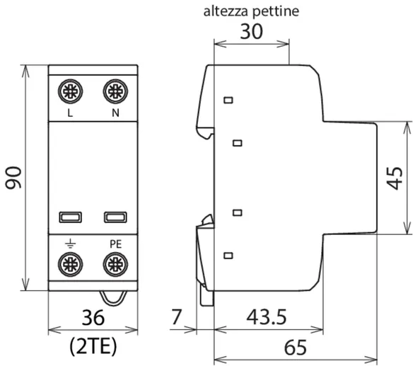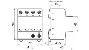| Corrente impulsiva di fulmine (10/350 µs) [L-N]/[N-PE] (Iimp ) | 7,5 / 30 kA |