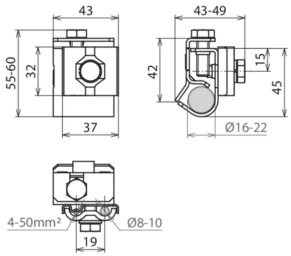 | Collegamento (rigido / semirigido) | 16-50 mm2 |