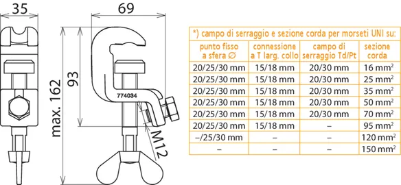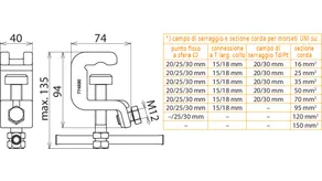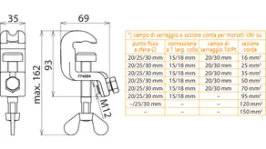 | Per sezione corda Cu | 16 ... 150 mm2 |
