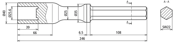 | Innesto | innesto esagonale, apertura 22 x 108 mm |