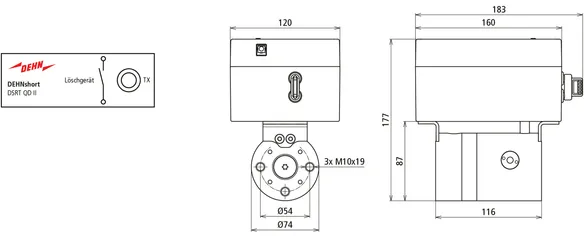 | UsciteDispositivo di estinzione | Cavo a fibre ottiche (corrisponde a min. 43 mA) (2x TX) |