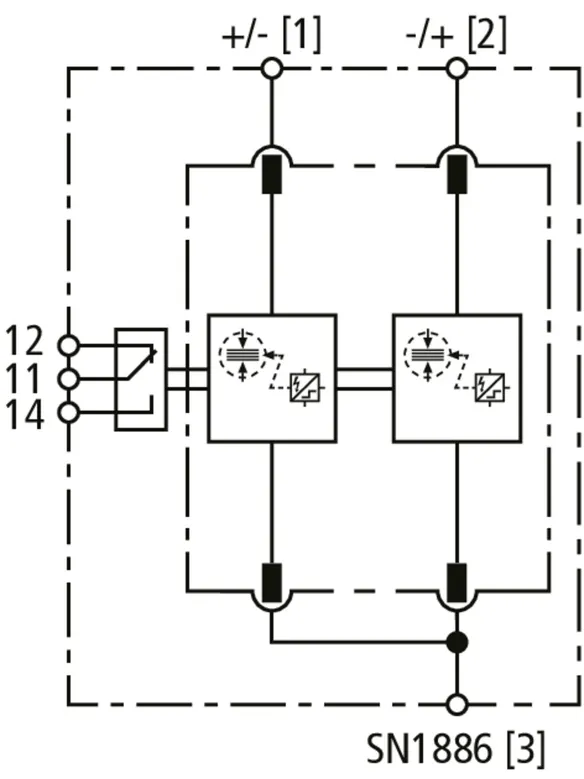 | Corrente impulsiva di fulmine (10/350 µs) [DC+ -> DC-] (Iimp ) | 12,5 kA |