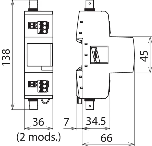 Scaricatore combinato compatto per la protezione di impianti elettroacustici (p. es. allarmi vocali, impianti con altoparlante). Protezione di una coppia di fili con separazione galvanica con la possibilità di schermatura diretta o indiretta. Collegamento del conduttore veloce e senza l’ausilio di attrezzi per mezzo di tecnica a innesto diretta. Per una facile sostituzione dello scaricatore, le unità dei morsetti di collegamento possono essere sbloccate e rimosse dall'involucro. Con contatto di telesegnalamento integrato (contatto in apertura n.c.).